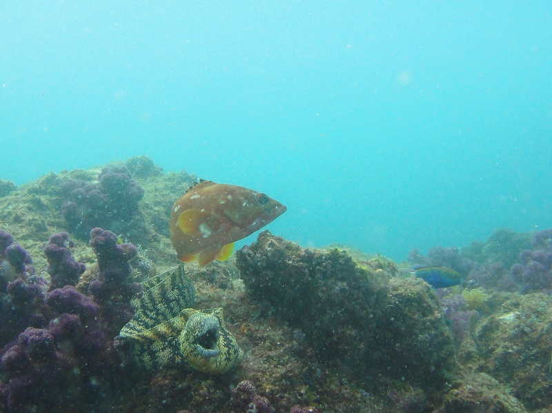 フエフキダイの群れは残念でしたが、でかいブダイやウツボと遊んできました。